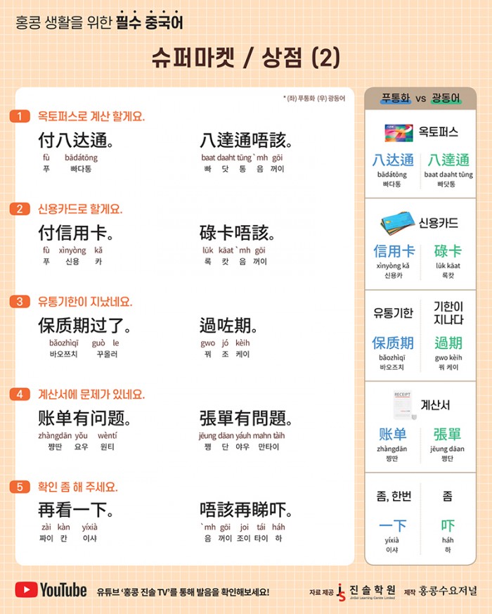 [홍콩 생활을 위한 필수 중국어] 슈퍼마켓 / 상점(2)