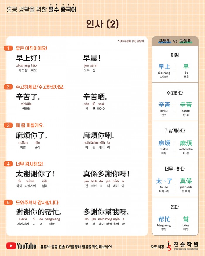 [홍콩 생활을 위한 필수 중국어] 인사(2)