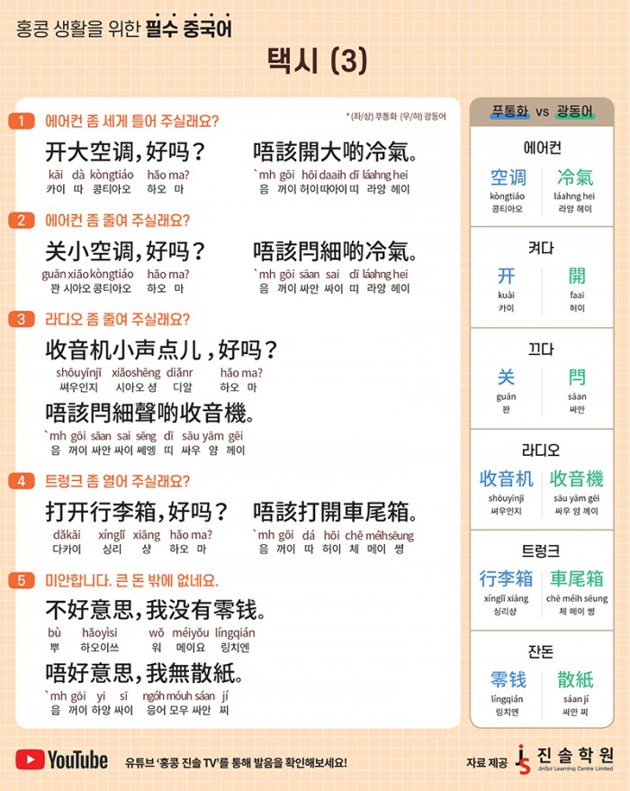 [홍콩 생활을 위한 필수 중국어] 택시(3)