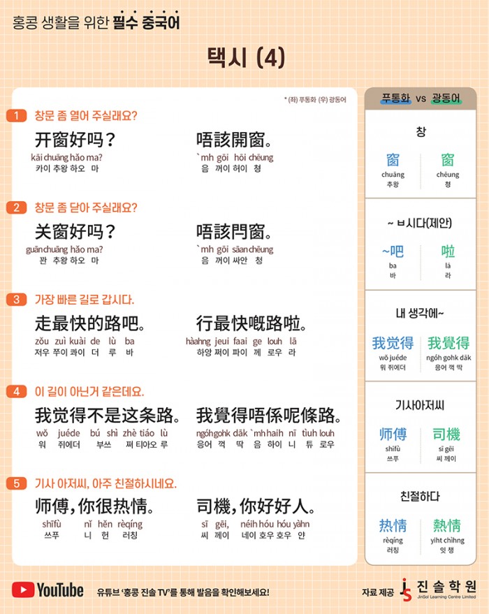 [홍콩 생활을 위한 필수 중국어] 택시(4)