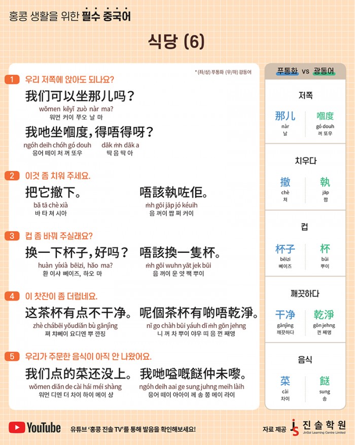 [홍콩 생활을 위한 필수 중국어] 식당(6)