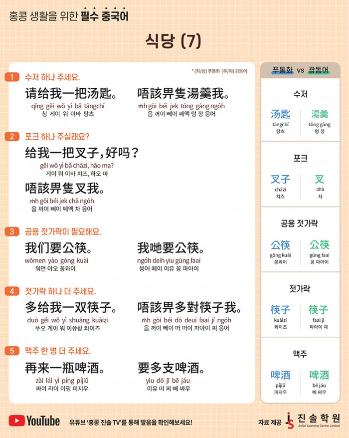 유튜브 ‘홍콩 진솔 TV’를 통해 발음을 확인해보세요!