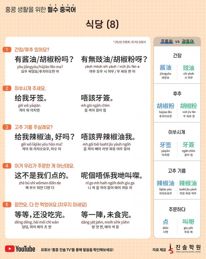 유튜브 ‘홍콩 진솔 TV’를 통해 발음을 확인해보세요!