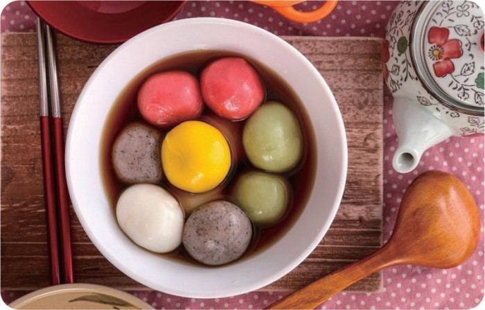 이들은 한국처럼 단팥죽을 먹지는 않지만 팥죽 안의 새알심처럼 생긴 탕완(湯丸)을 포함한 여러 음식을 준비하여 명절 분위기를 낸다. (탕완은 원소절 때 먹는 탕위엔과 같은 음식이다)