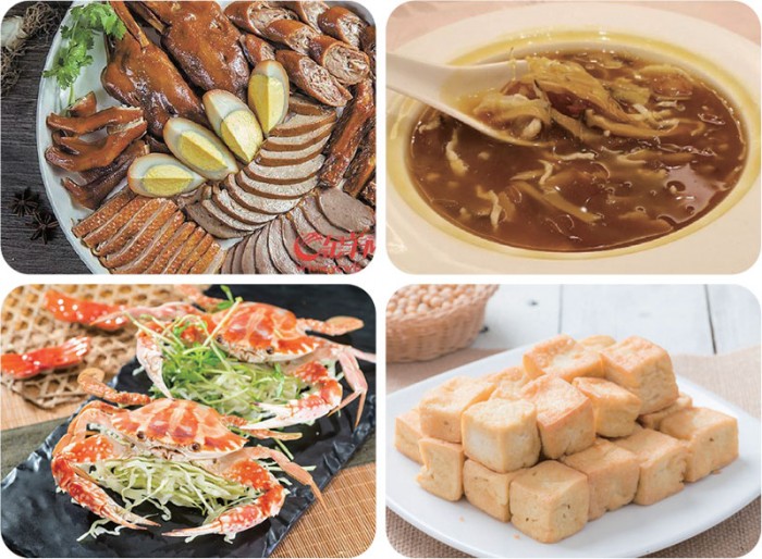한국인의 입맛에 맞는 음식으로는 대표 요리인 거위 편육(糯軟肥厚獅頭鵝)을 비롯하여 홍뚠위츠(紅炖魚翅:샥스핀), 똥시에(紅凍蟹:콜드 크랩), 쟈떠우푸(炸豆腐:튀김 두부)등을 추천한다.