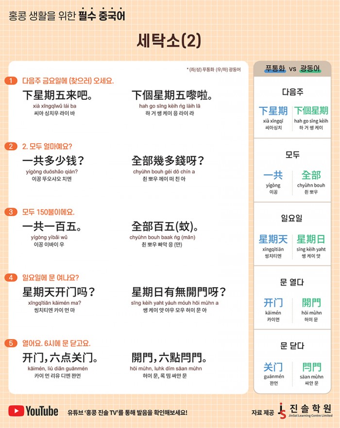 유튜브 ‘홍콩 진솔 TV’를 통해 발음을 확인해보세요!