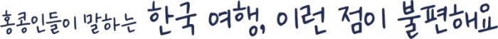 위에서 언급된 지적들은 비단 홍콩 사람들 뿐만 아니라 다른 외국인 관광객들도 공통적으로 느끼는 불편 사항이라 생각된다.
