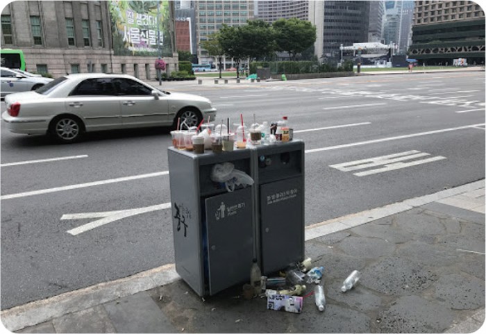 여행객들은 길거리에서 간식이나 분식 거리를 먹고 나면 이내 곤욕을 치른다. 휴지통을 찾지 못해 쓰레기를 계속 들고 다니는 불편을 감수해야 하는 것이다.