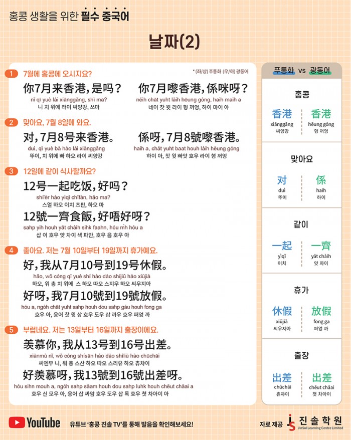 유튜브 ‘홍콩 진솔 TV’를 통해 발음을 확인해보세요!