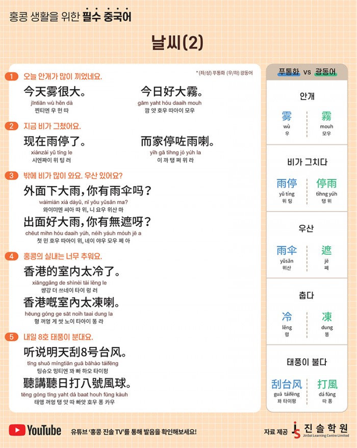 [홍콩 생활을 위한 필수 중국어] 날씨 (2)