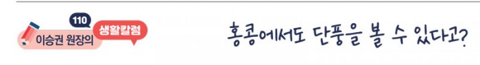 여행을 좋아하는 홍콩 사람들은 단풍 구경도 즐긴다. 단풍 여행을 떠나는 곳은 주로 일본과 한국이다. 그러나 올해는 아쉽게도 해외로 단풍 여행을 떠나기 힘들게 되었다. 우리 교민들 또한 요즘같은 가을철에 고국의 아름다운 단풍이 눈앞에 아른거릴 것 같다. 하지만 실망하긴 이르다. 한국처럼 화려하지 않지만 나름 울긋불긋 자태를 뽐내는 수목을 볼 수 있는 곳들이 홍콩에도 있다.