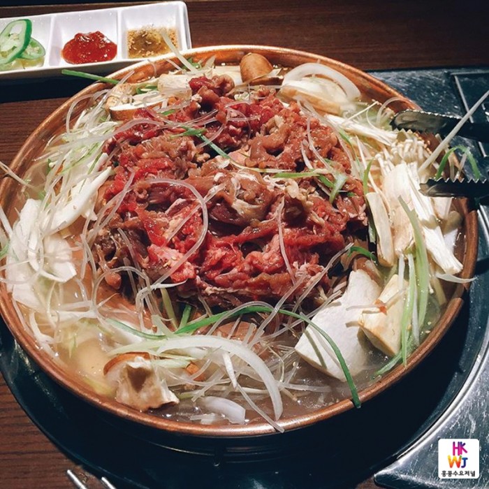 식당 입구에는 광어 수십마리가 담긴 대형 수족관이 길가에서도 훤히 보이게 불을 밝혔다. 홍콩 연예인들과 유명인들이 다녀간 흔적들이 여러 사진과 싸인, 신문스크랩과 함께 벽면을 가득 채우고 있었다. 한형제불고기가 추구하는 요리는 간편하고 부담없는 서울불고기다. 큰 불판에 국물과 야채가 많아 작은 전골처럼 맛보는 불고기이다. 미국이나 해외에서는 ‘불고기’라는 단어가 외국인에게도 익숙한데 홍콩은 ‘BBQ’라는 표기를 더 많이 쓰다보니 아직은 손님들이 잘 모르는 것 같다고 말한다. 도리어 불고기보다 삼겹살이 더 익숙하다고. 한형제불고기는 점심시간에 몰려드는 직장인들을 공략하기 위해 돌솥비빔밥 55달러, 찌게류 60달러, 육회비빔밥 68달러, 회덮밥 78달러 등 한국과 비슷한 가격대로 제공한다.