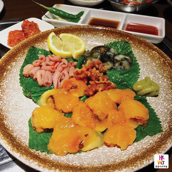 최근 인기를 끌고 있는 광어회와 해산물은 매주 한국에서 항공편으로 수출입허가를 투명하게 받아 판매하고 있다고. 광어는 제주, 전복은 완도, 개불과 멍게 및 해삼은 통영에서 각각 수입하고 있다. 특별히 홍콩인들은 산낙지를 많이 찾는다고 한다. 한국에서만 맛볼 수 있는 징그럽고도 재미있는 산낙지를 시켜 꿈틀거리는 모습을 사진과 동영상에 담아 SNS에 공유한다고.