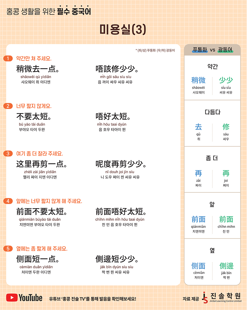 [홍콩 생활을 위한 필수 중국어] 미용실(3)