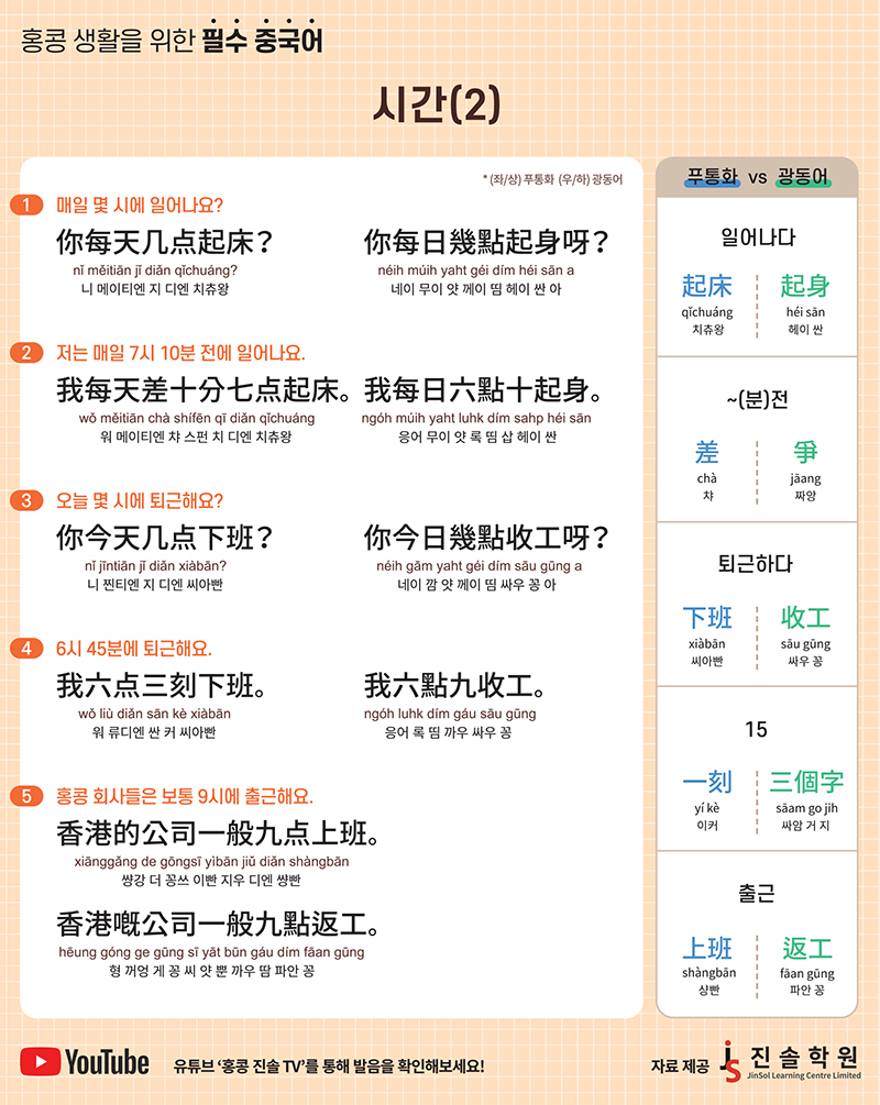 유튜브 ‘홍콩 진솔 TV’를 통해 발음을 확인해보세요!