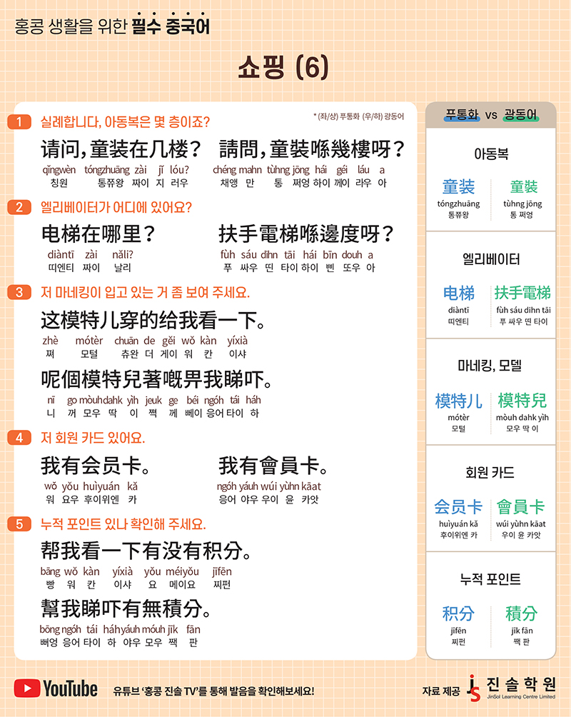 유튜브 ‘홍콩 진솔 TV’를 통해 발음을 확인해보세요!