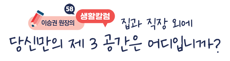 [이승권 원장의 생활칼럼] 집과 직장 외에 당신만의 제 3 공간은 어디입니까?