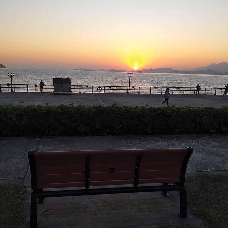 여기서 커피 한 잔하며 독서나 사색에 잠긴 후 밖으로 나와 아래의 계단을 걸어 내려가면 바닷가 인근의 넓은 공원이 나온다. 사이버포트와 벨에어 아파트로 연결되는 공원이다. 이곳에서 산책 후 해가 질 무렵 벤치에 앉아 일몰을 감상하곤 하는데 석양이 지는 바다와 지나가는 배들이 아름다운 경관을 선사한다.