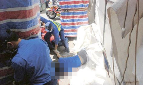 황씨는 아파트 아래 노점상에 설치된 천막 위로 떨어졌고, 노점상의 천막은 완전히 무너졌다.