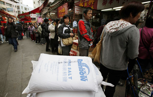 일본의 방사능 유출 위기가 수습될 기미를 보이지 않고 있는 가운데, 중국 내에서 일어난 소금 사재기 열풍이 홍콩으로까지 번지고 있다.