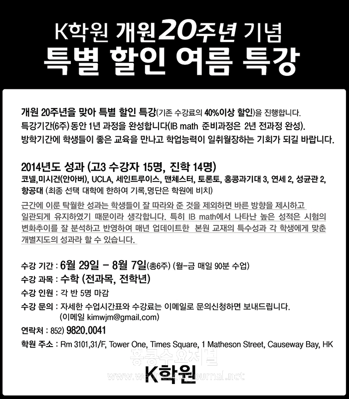 홍콩수요저널(Wednesday Journal Ltd)은 홍콩정부 정기간행물에 정식 등록된 한글 신문입니다.