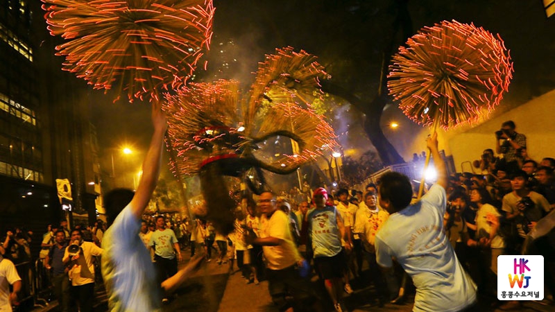 1880년부터 시작한 이 축제는 과거 홍콩 원주민 하카족의 풍습이다. 하카족 마을에 전염병이 돌자 마을 장로의 꿈에 부처님이 나타나 3일 밤낮으로 불꽃과 함께 용춤을 추면 질병이 사라질 것이라고 이야기했다. 이에 마을 사람들이 3일 밤낮으로 향, 폭죽, 불꽃 등과 함께 융춤을 춰 질병이 사라졌다고 한다. 그 이후 매년 중추절이 되면 건강을 기원하기 위해 파이어 드래곤 댄스가 펼쳐진다.