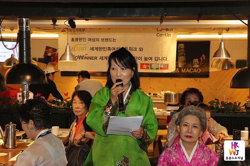 변금희 담당관은 인사말에서 “코윈 자체 행사 뿐 아니라 홍콩내 여러 단체 모임에도 적극 참여하여 한인단체와의 친목 강화에 기여하려고 노력하고 한민족 여성의 지위 향상과 국제화 시대에 걸맞은 여성상 확립을 위해 계속 힘쓸 것”이라고 말했다.