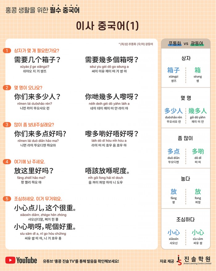 유튜브 ‘홍콩 진솔 TV’를 통해 발음을 확인해보세요!