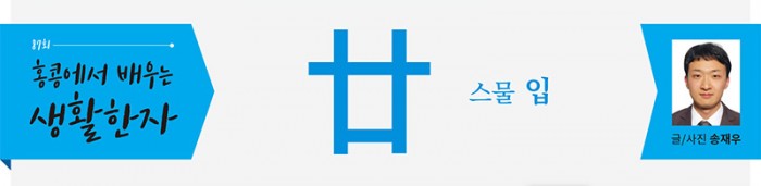 숫자 10은 한자로 十(열 십)이라고 씁니다. 그러면 20은 어떻게 쓸까요? 당연히 二十(이십)이라고 쓰면 되지만 한 가지 방법이 더 있습니다. 바로 廿(스물 입)자를 사용하는 것입니다.