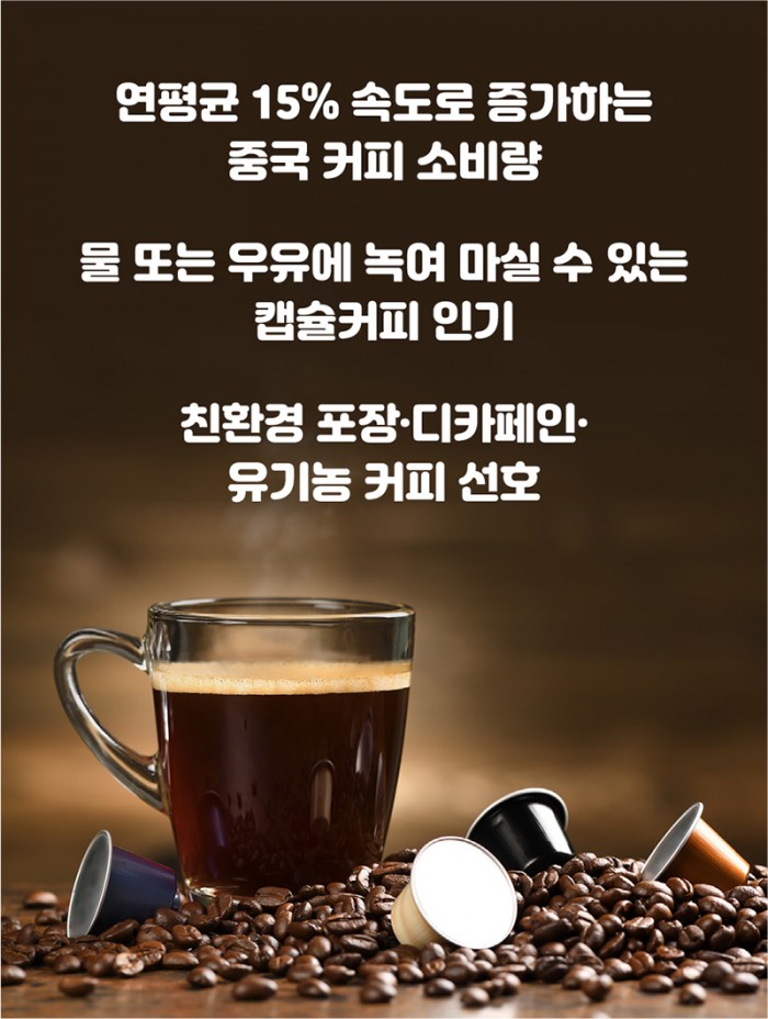 현재 중국에서는 공간과 시간에 구애받지 않고 언제 어디서든 물 또는 우유에 녹여 편하게 마실 수 있는 캡슐커피 붐이 일어나고 있다.