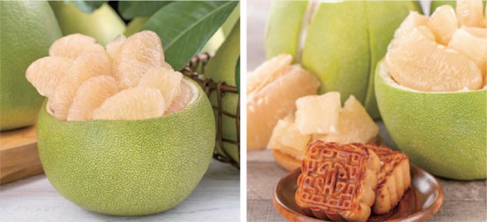 월병 외에도 포멜로는 추석 때 빠질 수 없는 명절 과일이다. 포멜로는 현지인들이 광동어로 록야우(碌柚)라고 부른다. 둥근 모양이 가족의 화합을 상징하기도 하며 특히 포멜로의 새콤달콤함은 월병으로 느끼해진 입맛을 가시게 한다.