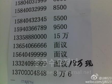 그는 "더 좋은 번호는 없냐"는 문의에 몇 곳에 전화를 건 뒤 "끝자리에 '0'이 연속으로 6개 있는 번호를 20만위안(3천600만원)에 구해주겠다"고 말했다.
