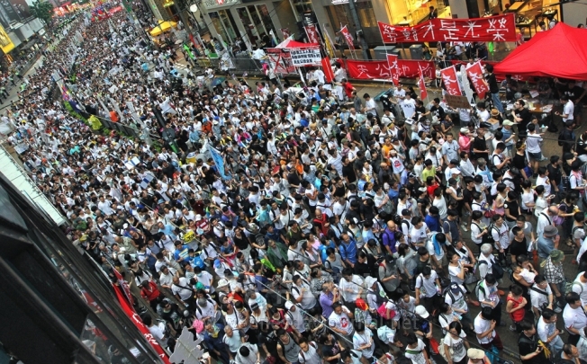 - 이 날 도심 시위에는 주최 측 추산 약 43만 명, 경찰 추산 6만6000명이 참가했음. 이들은 센트럴, 완차이, 코즈웨이 지역을 중심으로 시위 행진을 계속하며 전면적인 보통선거 도입을 촉구함.