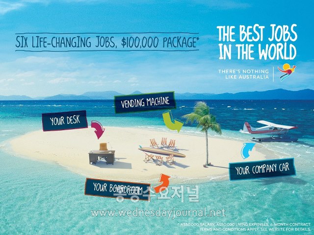 올해에는 공원 관리원, 야생동물 관리사, 자연공원 탐사관 등 모험과 여행을 좋아하는 사람이면 누구나 바라는 환상적인 직업이 걸려있으며 호주 정부는 경쟁을 통해 뽑힌 사람에게 연간 10만 호주달러(79만 홍콩달러)의 월급과 호주까지의 여행비를 줄 예정이다.