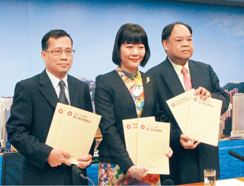지난 8월 제시한 경제성장률 전망치 1.2~2.0%의 하단에 가까워질 가능성이 높아졌다는 것이다. 홍콩의 GDP는 지난해 5%, 2010년 7.1% 증가했다.