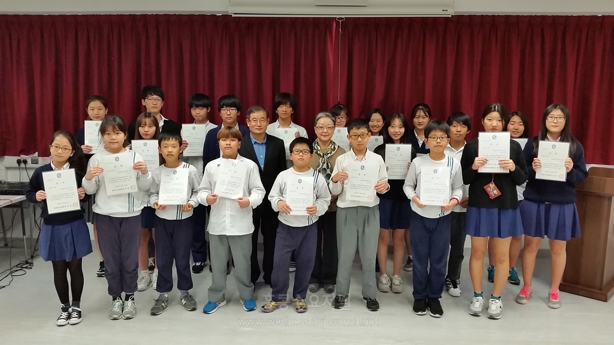 홍콩한인회(회장 최영우)는 15일 화요일 홍콩한국국제학교에서 ‘2015 홍콩한인회 주최 백일장’ 시상식을 가졌다. 앞서 11월 17일에 홍콩한인회 주최로 ‘나만의 특별한 경험, 남에게 도움을 주는 방법, 함께 사는 세상, 우리의 미래’라는 주제로 시, 단편 소설, 수필 등의 문예 작품을 창작하는 백일장 대회를 개최했었다.