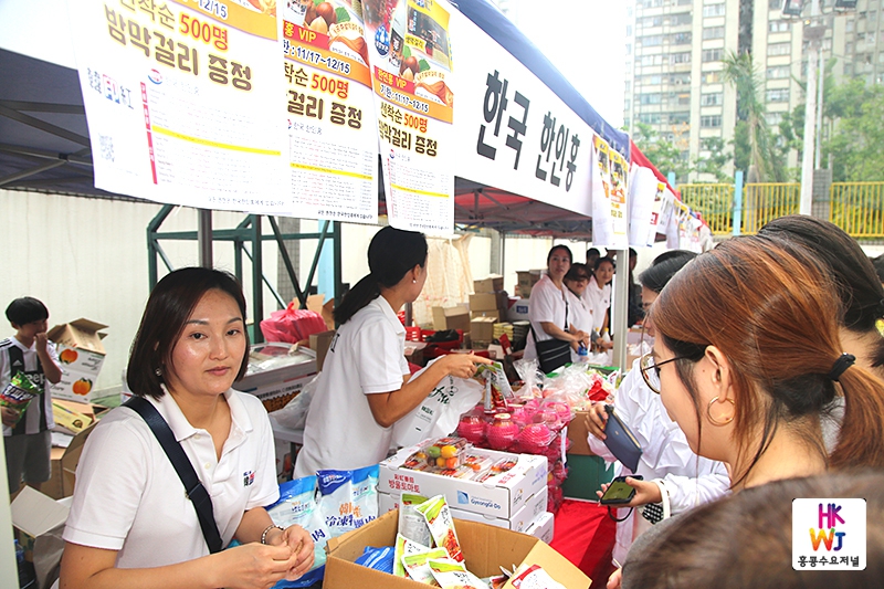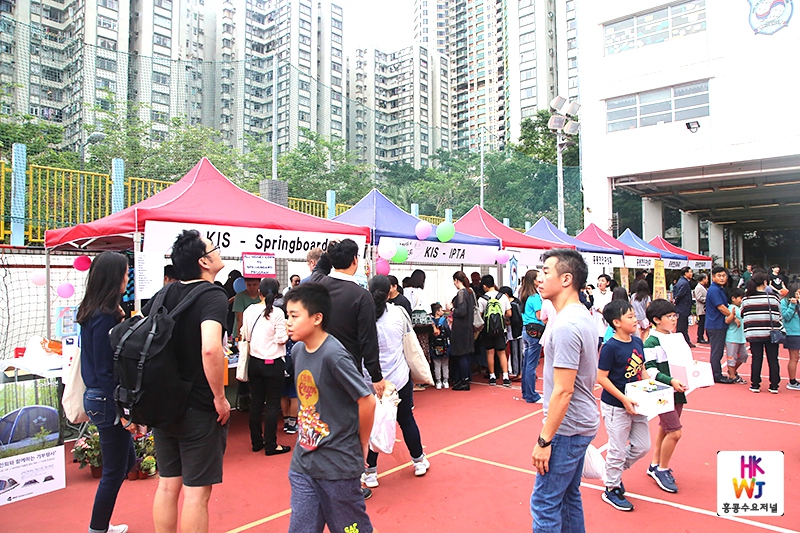 신관 운동장에 설치된 각종 부스에는 우리 먹거리 장터, 알뜰바자회, 옥션, 물물교환 등이 진행됐다. 홍콩한인교회, 홍콩엘림교회, 홍콩한인성당, 코윈 홍콩지부, GCF홍콩지부, 한참, NS푸드, 신세계마트, KOFCO, 한국 한인홍 등 많은 부스에서 오뎅, 순데, 치킨, 한식품, 음료 등을 판매했다.