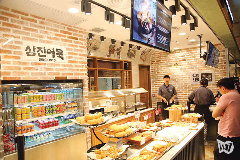 1953년부터 3대에 걸쳐 이어온 삼진어묵은 한국에서도 가장 오래된 어묵 브랜드다. 삼진어묵은 Korchina F&B를 통해 홍콩에 첫 진출했으며, 싱가폴, 인도네이사, 필리핀 등으로도 수출되고 있다. 홍콩도 피쉬볼을 비롯한 어묵이 많이 있지만 삼진어묵의 예쁘고 다양한 어묵 제품에 매료되어 많은 사람들이 줄을 잇고 있다.