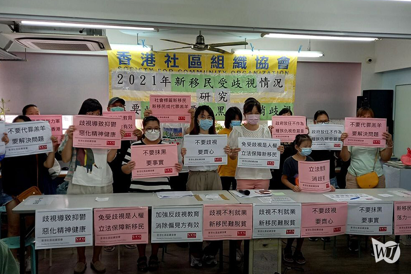 사회단체협회(Society of Community Organization 香港社區組織協會)의 조사에 따르면 본토에서 온 새로운 이민자의 절반 이상이 홍콩에서 일종의 차별을 경험했다고 말했다.